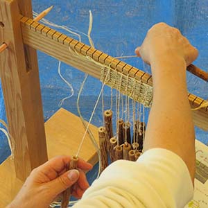 カラムシという草の繊維をつかい、縄文時代からある編み方でコースターをつくります。
